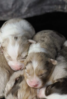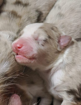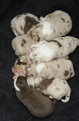 1 x Chcocolate-Merle mit Kupfer, 1x Braun-weiß & 5 x Chocolate Merle